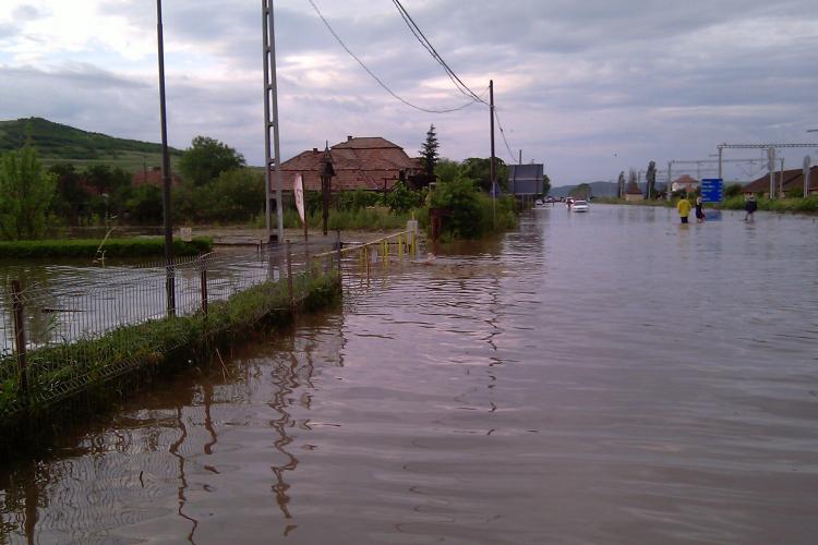 Drumul Național 1 C Cluj-Napoca - Dej a fost blocat duminică după amiaza în zona municipiului Dej de o rupere de nori.