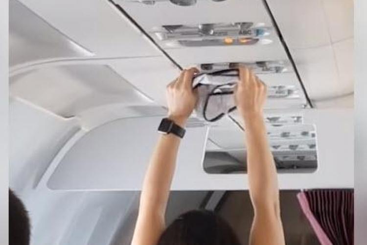 Scene incredibile au fost filmate într-un avion de linie. O femeie a uscat o pereche de chiloți la instalația de aer condiționat din avion.