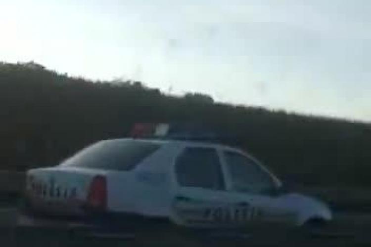 Un autoturism al Poliției Cluj a luat foc, trecătorii fiind cei care l-au ajutat pe polițistul depășit de situație.