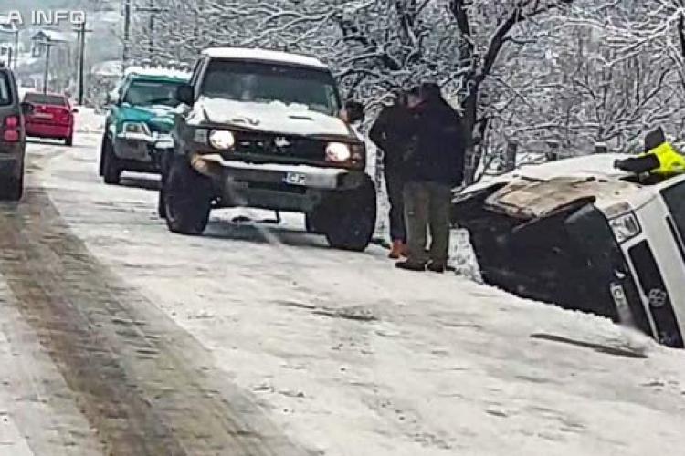 Un autoturism s-a răsturnat pe drumul dintre Feleacu și Vâlcele, județul Cluj. Din fericire, nu au fost victime. Poliția și pompierii au intervenit rapid.