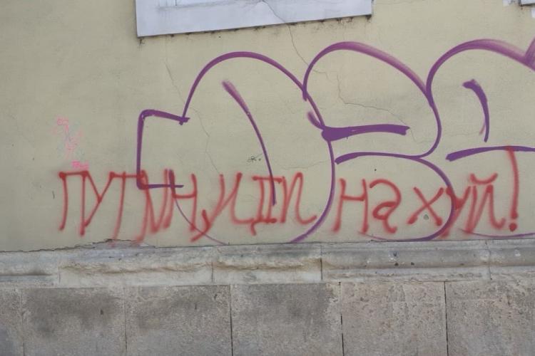 Câteva mesaje împotriva războiului au apărut pe clădirile de pe strada Memorandumului.