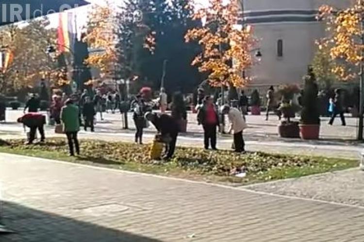 Pelerinii aflați la Iațși, cu ocazia hramului Sfintei Parascheva, s-au gândit să nu meargp acasăcu mâna goală, așa că s-au apucat să culeagă panseluțele plantate în centrul orașului.