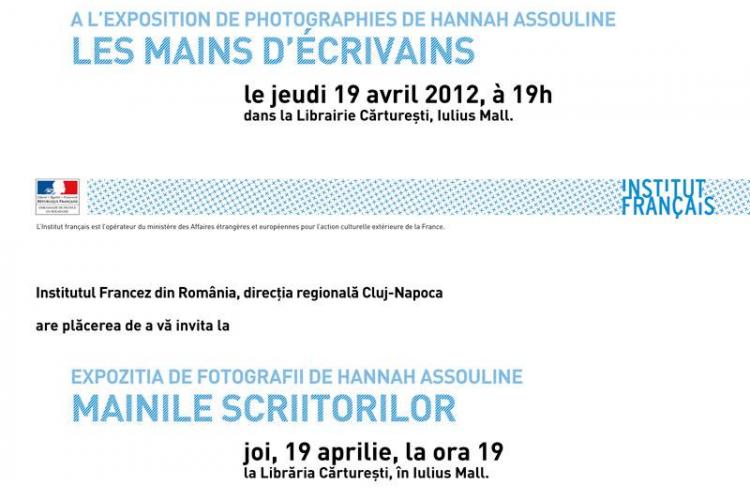 Expozitia de fotografie "Les Mains D'ecrivains/Mainile scriitorilor" va fi vernisata joi, 19 aprilie, la Cluj-Napoca, la libraria Carturesti din Iulius Mall.