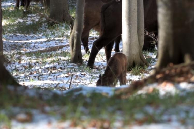 Un prim pui de zimbru s-a născut în libertate, în Munții Făgăraș, iar ”micuțul” a fost filmat de rangeri.