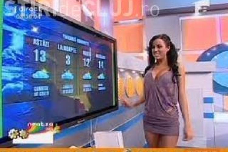 Asistena emisiunii "Neaţa cu Răzvan şi Dani" de la postul de televiziune Antena 1 a fost surprinsă pe plagă fără sutien.