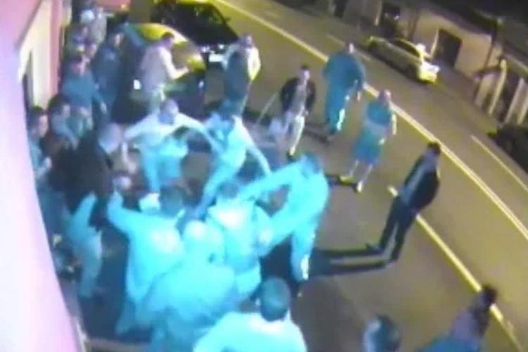 Bătaia din clubul Nox, de pe strada București a durat mai puțin de 5 minute. Pe imaginile surprinse de camerele de supraveghere se poate vedea cum scandalul a izbucnit din senin, fără ca angajații clubului să apuce să reacționeze.