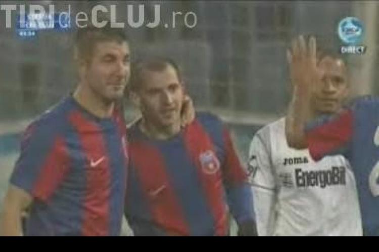 Stancu a reusit sa inscrie in gol de toata frumusetea in cea de-a doua repriza a meciului Steaua - CFR Cluj. Atacantul a fost servit cu un balon in centrul careului si l-a "executat" pe Nuno Claro.