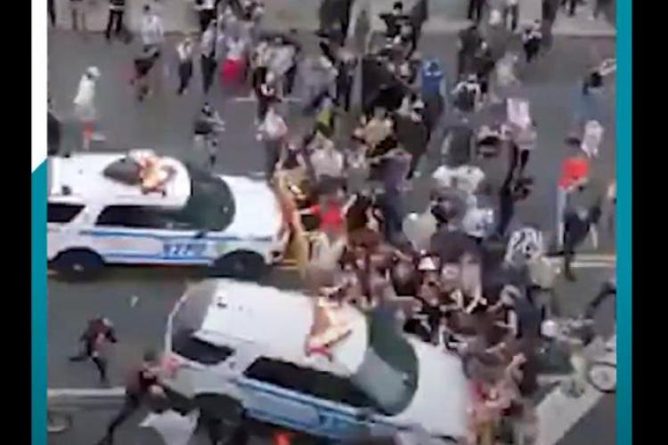 Mașinile de poliție intră în manifestanți în SUA, la New York, nu în ceva localitate mică - VIDEO