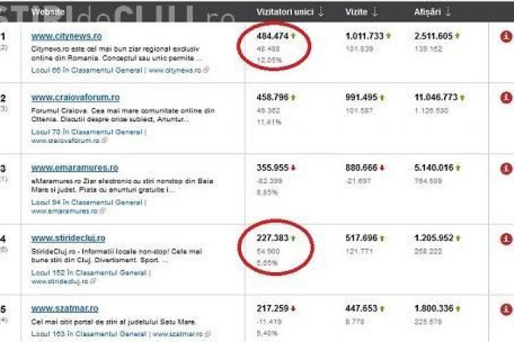 Potrivit trafic.ro Stiri de Cluj si-a consolidat pozitia de lider al ziarelor locale din Cluj. Luna trecuta 207.338 de cititori au ales sa se informeze de pe Stiri de Cluj, din care 74.955 de clujeni.