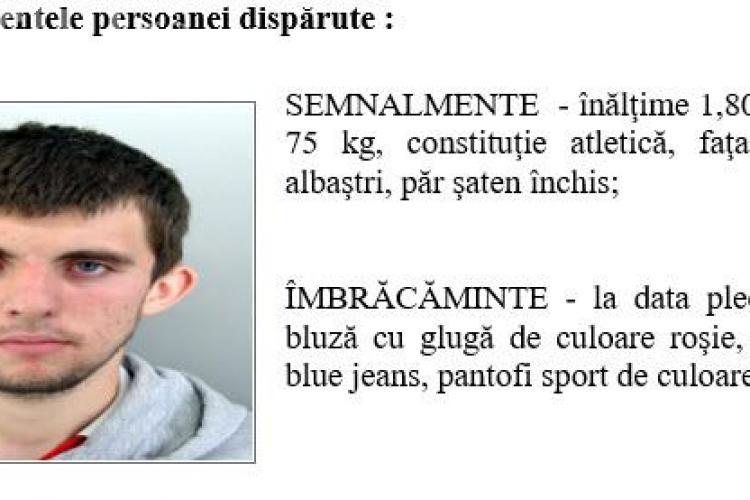 Poliţiştii clujeni desfăşoară activităţi pentru depistarea unui tânăr, de 19 ani, din Câmpia Turzii, care, la data de 27 martie a.c., ar fi plecat voluntar de acasă , nerevenind până în prezent.
