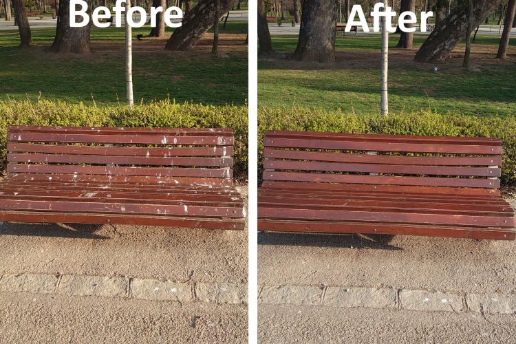 Un clujean a observat o bancă din Parcul Central plină cu găinaț de cioară și s-a pus să o spele. Firma care se ocupă de parcurile Clujului a uitat să își mai facă și treaba.