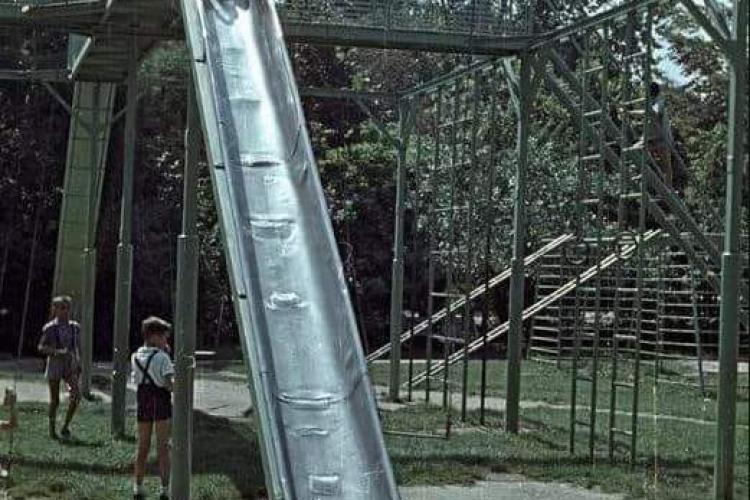 Toboganul mare de lângă Parcul Central din Cluj-Napoca era cel mai frumos din oraș, înainte de 1989.