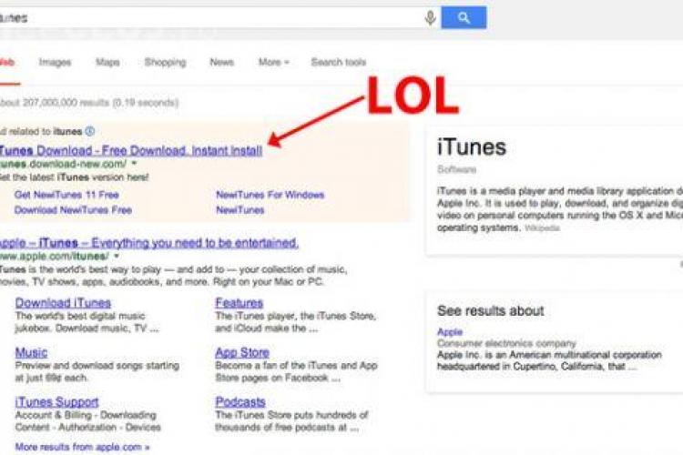 Apple a primit o lovitură grea din partea Google, din cauza serviciului de link-uri sponsorizate.