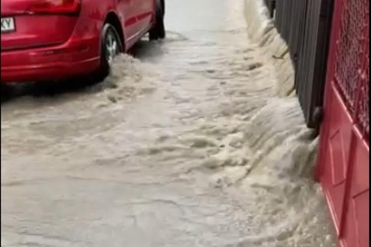 Strada Maramureșului din Cluj-Napoca, din nou sub ape după ploaia torențială de azi. „Este pește?”, întreabă ironic un clujean