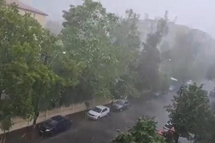 O ploaie puternică însoțită de grindină de dimensiuni mari s-a abătut în urmă cu puține momente asupra localității Apahida, județul Cluj. Bucățile de gheață au căzut timp de mai multe minute, acoperind rapid străzile și curțile.