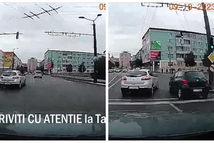 Un echipaj de poliție a fost filmat când trecea ilegal intersecția străzilor Decebal și Dacia, spre podul Traian.