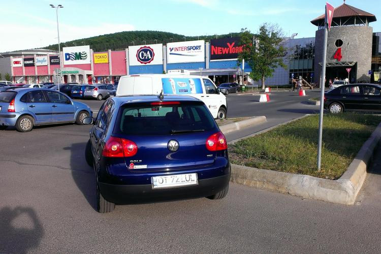 Șoferul unui VW cu numere de Olt a parcat într-o manieră inexplicabilă, la Polus Center Cluj.