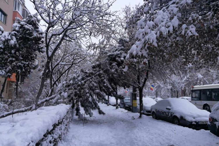 Un brad de pe Bulevardul Nicolae Titulescu s-a prăbușit sub presiunea zăpezii - FOTO