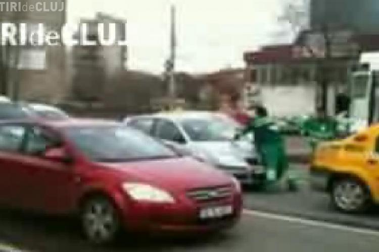 Soferii si angajatii de la salubritate si-au adresat injurii, dupa care unul dintre soferi a luat o piatra si i-a spart geamul masinii de la REBU.
