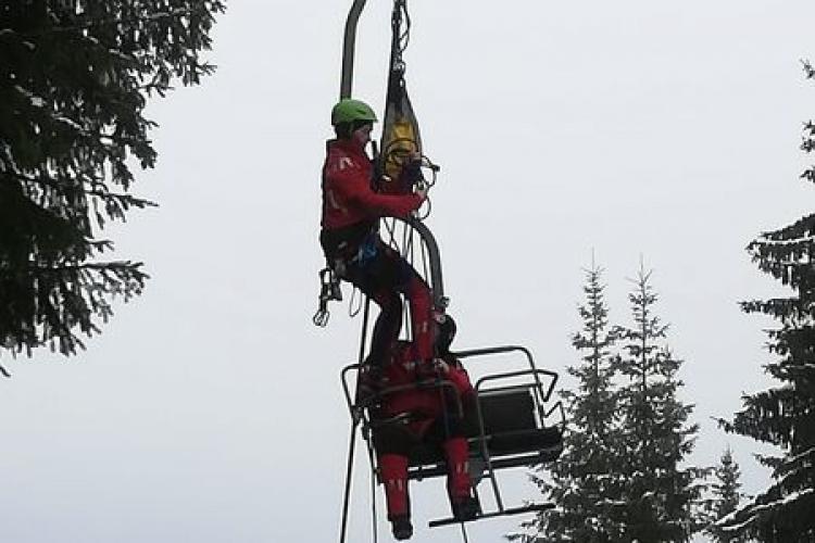 Intervenție la Buscat! Salvamontiștii clujeni, în misiune pentru evacuarea telescaunului blocat FOTO
