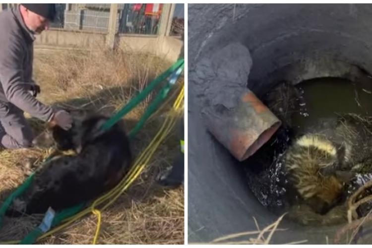 Pompierii din Blaj, județul Alba, au salvat un câine căzut într-o fântână adâncă de 20 de metri.