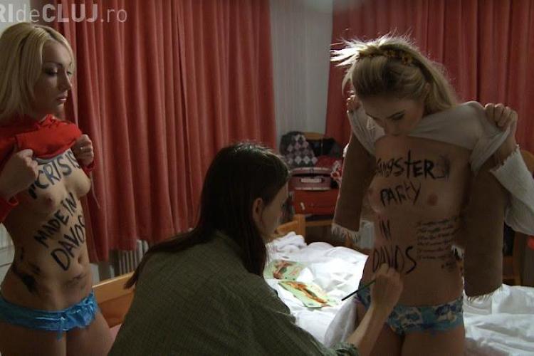Activistele grupului Femen au protestat in Ucraina, in sanii goi, impotriva vizitei lui Vladimir Putin si fata de sistemul opresiv al politiei.