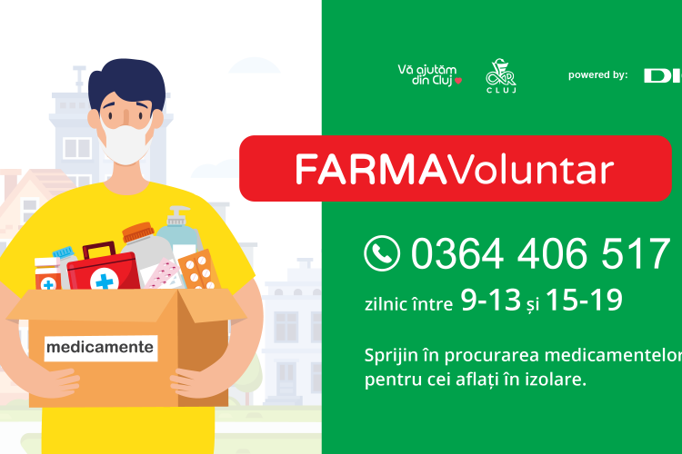 Inițiativa ”Vă ajutăm din Cluj” anunță o nouă campanie pentru combaterea efectelor pandemiei de coronavirus, numită ”FarmaVoluntar”, prin care zeci de voluntari le vor aduce medicamente persoanelor aflate în carantină.