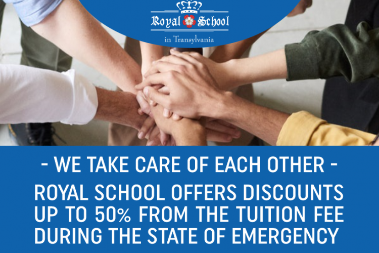 Începând cu luna aprilie, pe toată perioada cât va dura Starea de Urgență, Royal School in Transylvania reduce taxele de școlarizare cu până la 50%. De asemenea, toate eforturile școlii se concentrează în această perioadă pe continuarea cursurilor prin mi