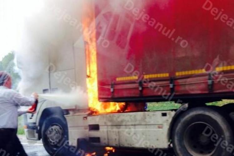 Un TIR a luat foc pe DN1 E 60, între Cluj-Napoca și Oradea, pe raza localității Bucea, comuna Negreni.
