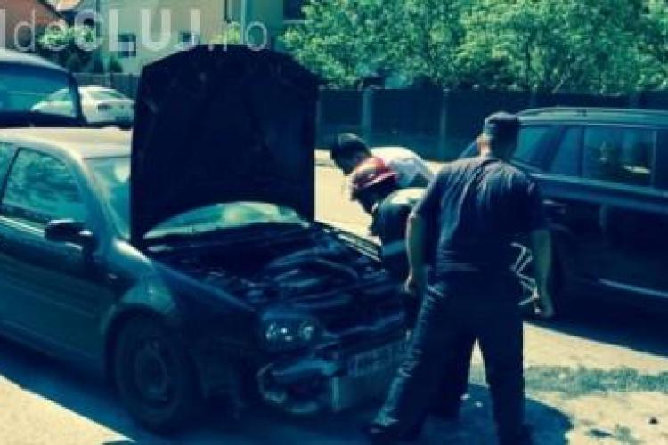 Un autoturism a luat foc, duminică dimineața, pe strada Făgetului din Cluj-Napoca.