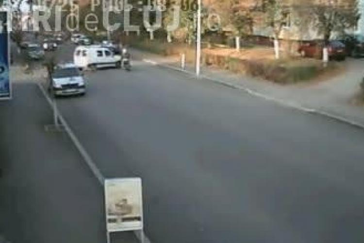 Doi conducatori de scuter au fost la un pas sa fie spulberati de un sofer din Dej, prea grabit pentru a se asigura. Primul a scapat, dar al doilea scuter a fost luat in plin.
