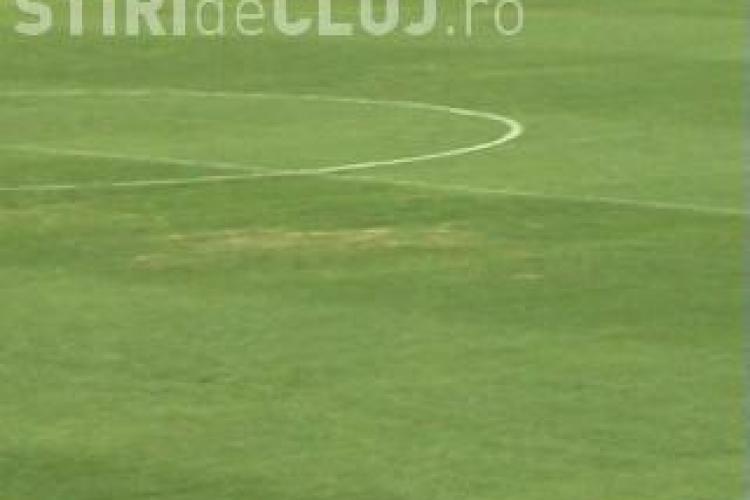 Gazonul de pe stadionul municipal Cluj Arena se prezinta in conditii excelente, dar exista o zona la centrul terenului unde iarba a inceput sa se ingalbeneasca.