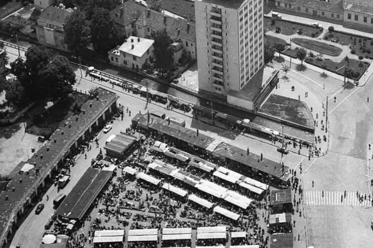 Piața Mihai Viteazu, fără hala agroalimentară și parkingul Leul. Atunci nu erau turnate încă betoane peste tot - FOTO