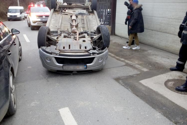 Un accident a avut loc în urmă cu puține momente în cartierul clujean Grigorescu. Un Opel s-a răsturnat în urma impactului.Șoferul a pierdut controlul volanului, iar mașina s-a răsturnat complet.
