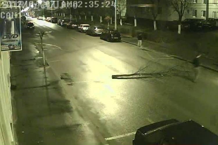 Doi tineri din Dej au pus in mijlocul unui drum un arbore taiat in urma toaletarii spatiilor verzi si au fost la un pas sa provoace un accident.