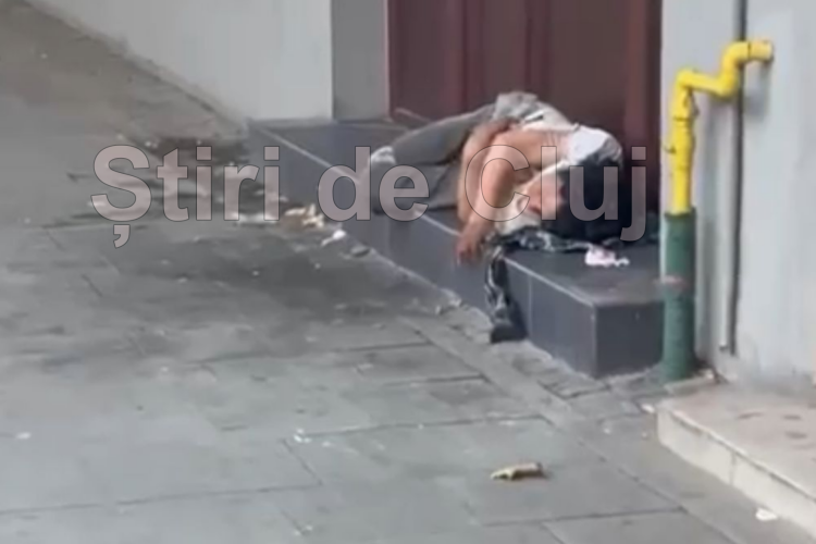 Locuitorii străzii Horea din Cluj-Napoca sunt la capătul răbdării! De mai bine de o săptămână, o femeie fără adăpost stă zilnic la pragul unei locuințe, fără ca autoritățile să intervină