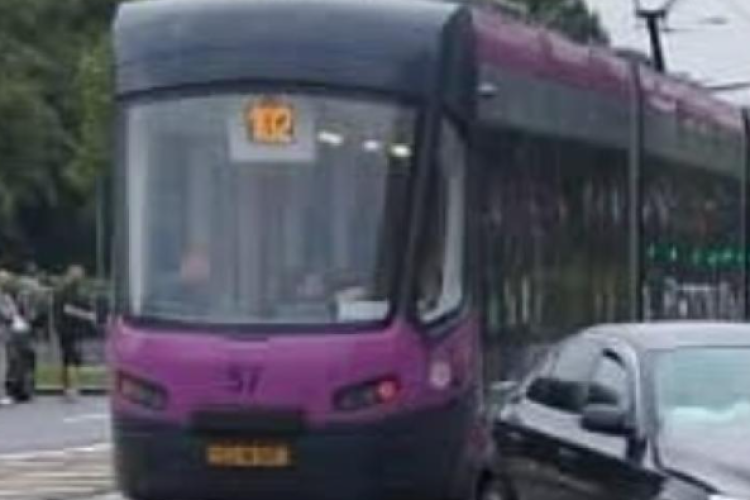 O șoferiță a fost surprinsă în timp ce nu a acordat prioritate pietonilor care urcau într-un tramvai și a depășit vehiculul pe partea dreaptă, deși zona era marcată corespunzător pe carosabil.