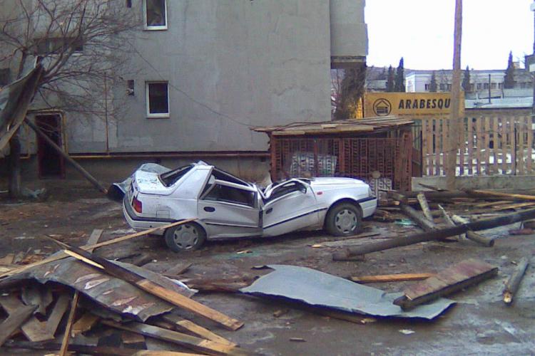 Mai multe masini au fost distruse de vijelia de sambata, 12 februarie, pe strada Rasaritului numarul 103, in cartierul Marasti, din Cluj-Napoca.