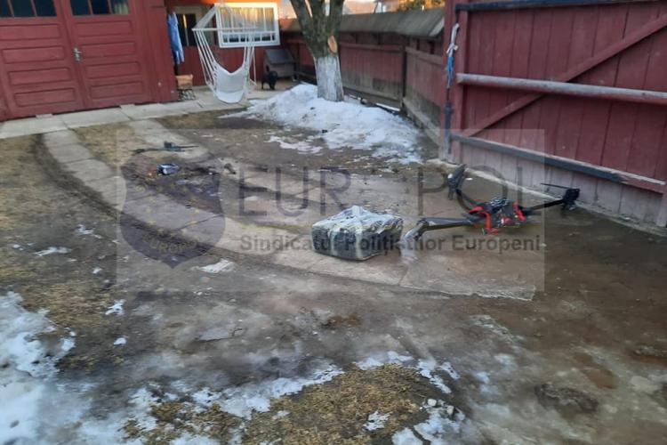 O dronă care transporta țigări de contrabandă a aterizat joi, 10 februarie, în curtea unei femei din județul Suceava. Speriată, femeia a sunat la 112.