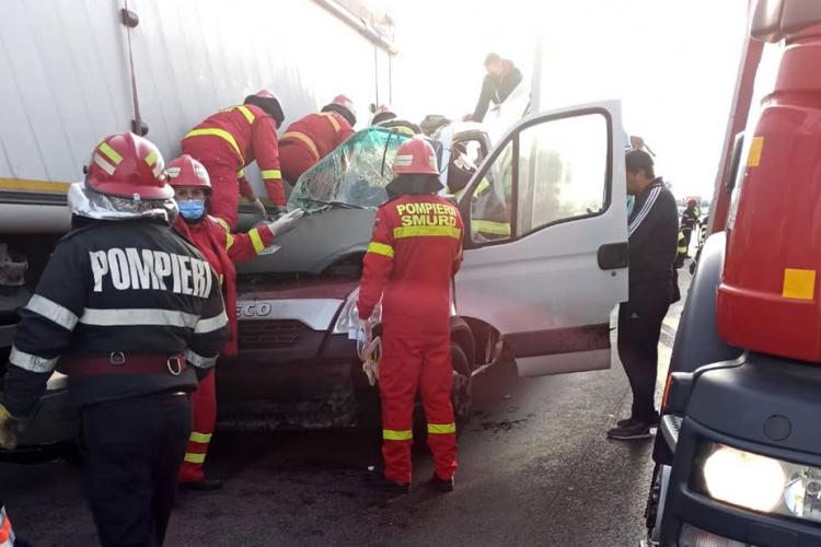Pompierii din Cluj-Napoca au intervenit în această dimineață pe raza localității Vâlcele pentru a salva un bărbat peste care a căzut o autoutilitară.
