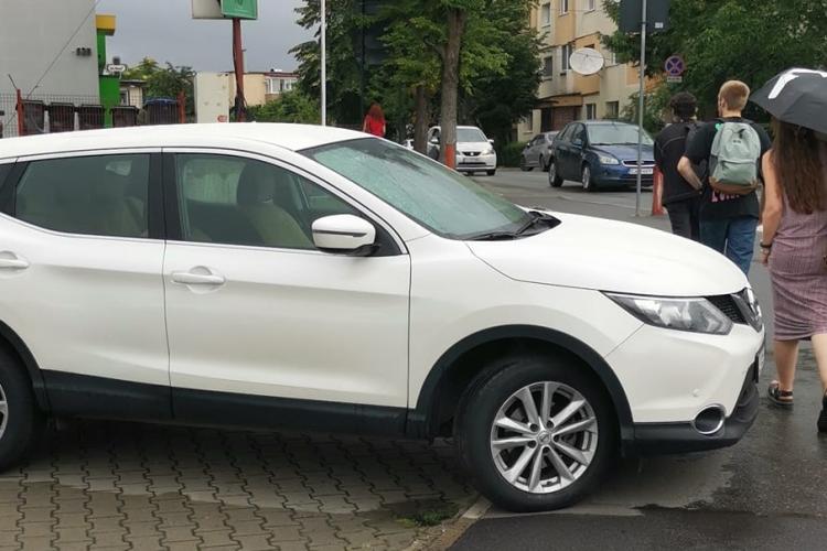 Un Mercedes roșu, tip SUV, a devenit subiect de revoltă, după ce a fost surprins parcat cu tupeu pe trotuarul de lângă Iulius Mall din Cluj-Napoca, fix pe o trecere de pietoni