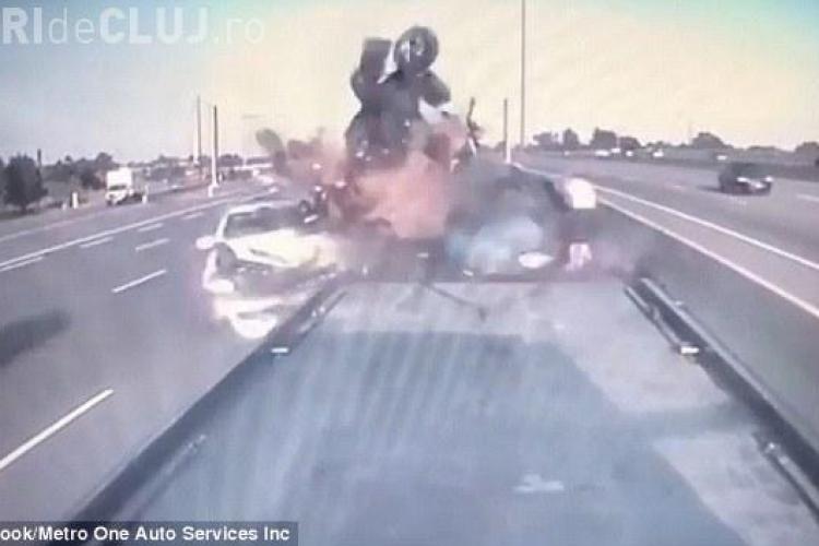 Un videoclip cutremurător în care un muncitor atârnă suspendat de un cablu al unui utilaj de construcţii a apărut pe Instagram.
