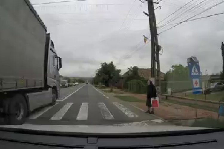 Pieton surprins traversând neregulamentar în centrul Clujului, aproape de a provoca un accident, într-un clip filmat cu camera de bord și trimis la Știri de Cluj.