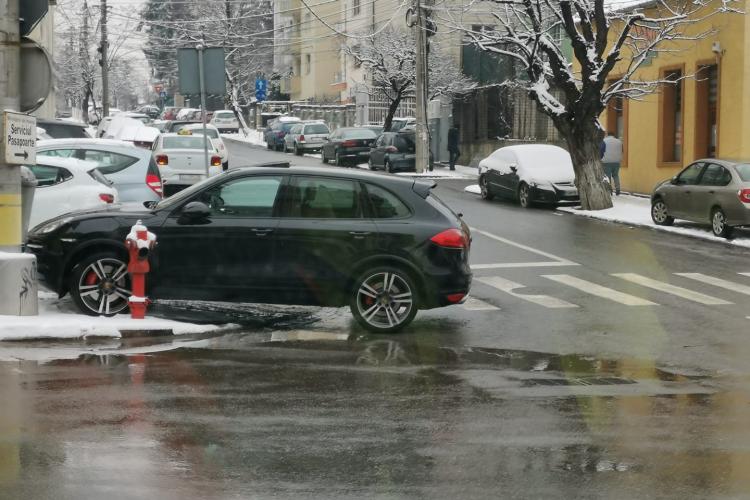 Un șofer a parcat cu nonșalanță chiar pe trecerea de pietoni, în fața Inspectoratului Școlar Județean Cluj, blocând accesul pietonilor și obligându-i să ocolească mașina pentru a traversa strada în siguranță