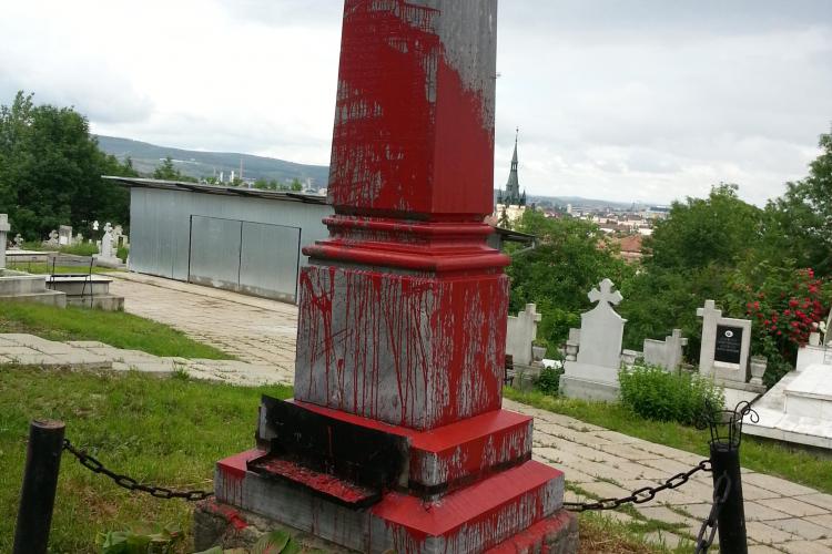 Monumentul unde maghiarii din Cluj comemorează Trianonul a fost profanat de persoane necunoscute, care au aruncat vopsea roşie pe acesta.