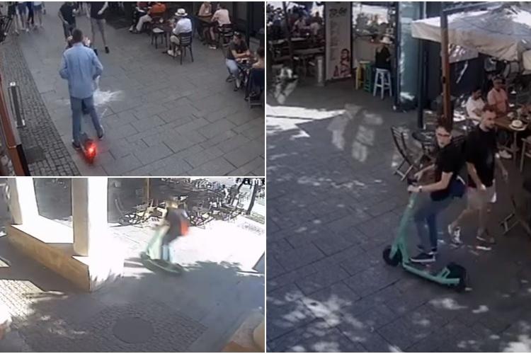 Un trotinetist din Cluj a doborât un pieton și a lovit o mașină parcată pe strada Nirajului din Cluj. Proprietarul îl caută pentru pagube – Video imagini camere de supraveghere.