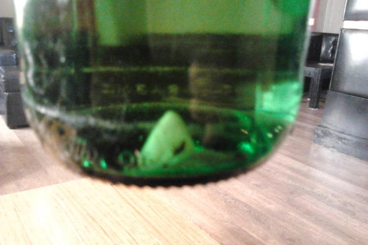 Un clujean a fost la un pas sa bea o molie care a fost imbuteliata intr-o sticla de bere Ursus. Prietenii cu care era la masa i-au atras atentia si s-a oprit la timp.