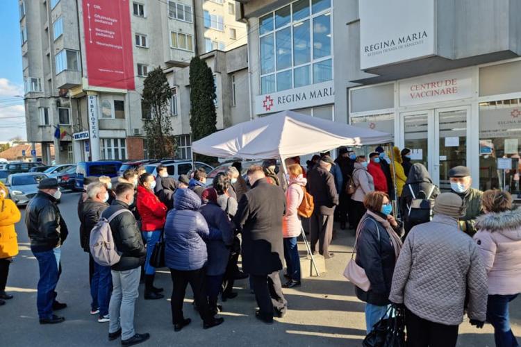 Clujenii formează cozi în fața centrului de vaccinare de pe strada Observatorului.