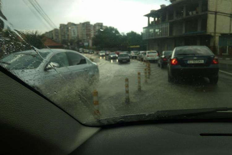 Ruperea de nori de joi după-amiaza a dus la inundarea mai multor zone ale Clujului, unde canalizarea este deficitară.