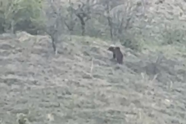 Imagini inedite surprinse azi dimineață la ora 5:00 în Dealu Negru, județul Cluj – un urs putea oricând să sară în fața mașinii!